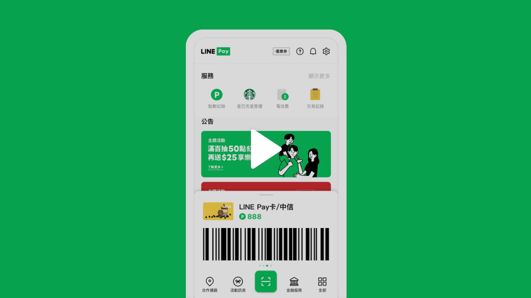 直覺的付款介面, 使用更流暢 多種付款模式,可依據個人使用習慣任選 輕鬆完成付款、電子發票和會員累點 快速模式 自動帶入上次的付款設定, 簡單又快速 標準模式 展開後可進行更多管理設定, 付款、管理設定都方便! 集合模式 一頁收納所有條碼, 可將慣用的模式設為主畫面 全螢幕條碼 點擊條碼即可放大, 放大後一樣可滑動切換